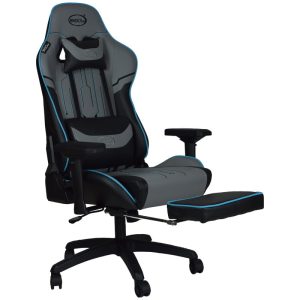 • BROCS, Silla Gamer BR6010, Apoya Pies, Gris/Negra, orilla detalle azul, Reclinable